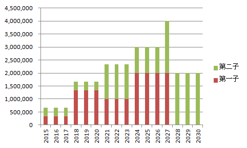 老後の資金も用意しておかなければなりません。ざっくり4,000万円。多いのか少ないのか分かりませんが、年金破綻前提で、妻が20年ぐらいで暮らせる金額、という想定です。なお、インフレは考慮していません。